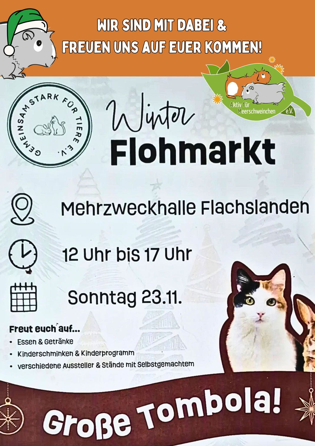 Herzlich Willkommen bei Floh's Markt! Mein Name ist Floh und ich habe zusammen mit den Mitgliedern von Aktiv für Meerschweinchen diese tolle Gruppe auf Facebook gegründet. Die Grundidee ist, dass einmal im Monat eine Woche lang eine Verkaufswoche stattfindet, in der man selbstgebastelte Sachen und auch gut erhaltene Flohmarkt Sachen zugunsten des Vereins verkauft. Man hat aber auch die Möglichkeit die Hälfte des Erlöses für sich zu behalten!